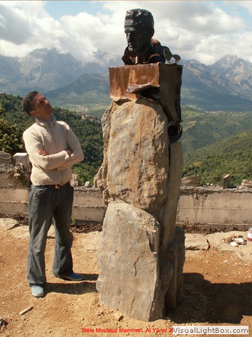 Du hältst den Traum aufrecht, einen "Garten der Poesie" zu schaffen. Worum geht es?Die Idee besteht darin, einen pittoresken oder englischen Garten zu schaffen, in dem es Statuen von Dichtern und hauptsächlich kabylischen Künstlern gibt. Diese Idee ist mir kurz nach dem 2. berberischen Frühling (2001) gekommen: Ich sah, dass die Kabylei eine zerstörte Gegend war, die man für die Kriege einberuft und die einen Raum und einen Moment des Aufschubs braucht, wo dieser ganze Schmerz durch Kunst sublimiert ist. Ein Garten, der sich in der Mitte der Ruinen erhebt, ein zauberhafter Ort, wo man schliesslich träumen kann. Ich habe also an der Büste aus Bronze von Lounès Matoub gearbeitet, an der Stele von Mammeri, die sich gegenwärtig in Ath Yenni befindet, sowie an den Stelen von Kateb Yacine und von Cherif Kheddam u.s.w. Ich hoffe, diesen Traum konkretisieren zu können, und wenn die örtliche Behörde nicht zustimmt, werde ich ein Familienlamilienstück in der Kabylei dafür nutzen.